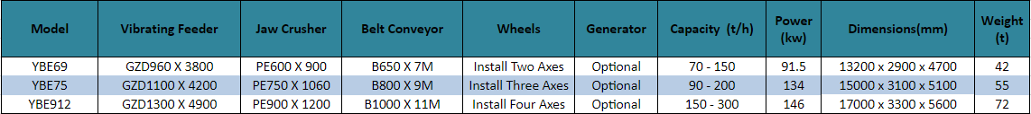 2. The portable crushing plant is able to achieve on-site crushing, avoid transporting material, which reduces the cost of transporting material for off-site crushing. In addition, the lengthened plant is able to transport the products to the motor-lorry directly, and then be carried away.